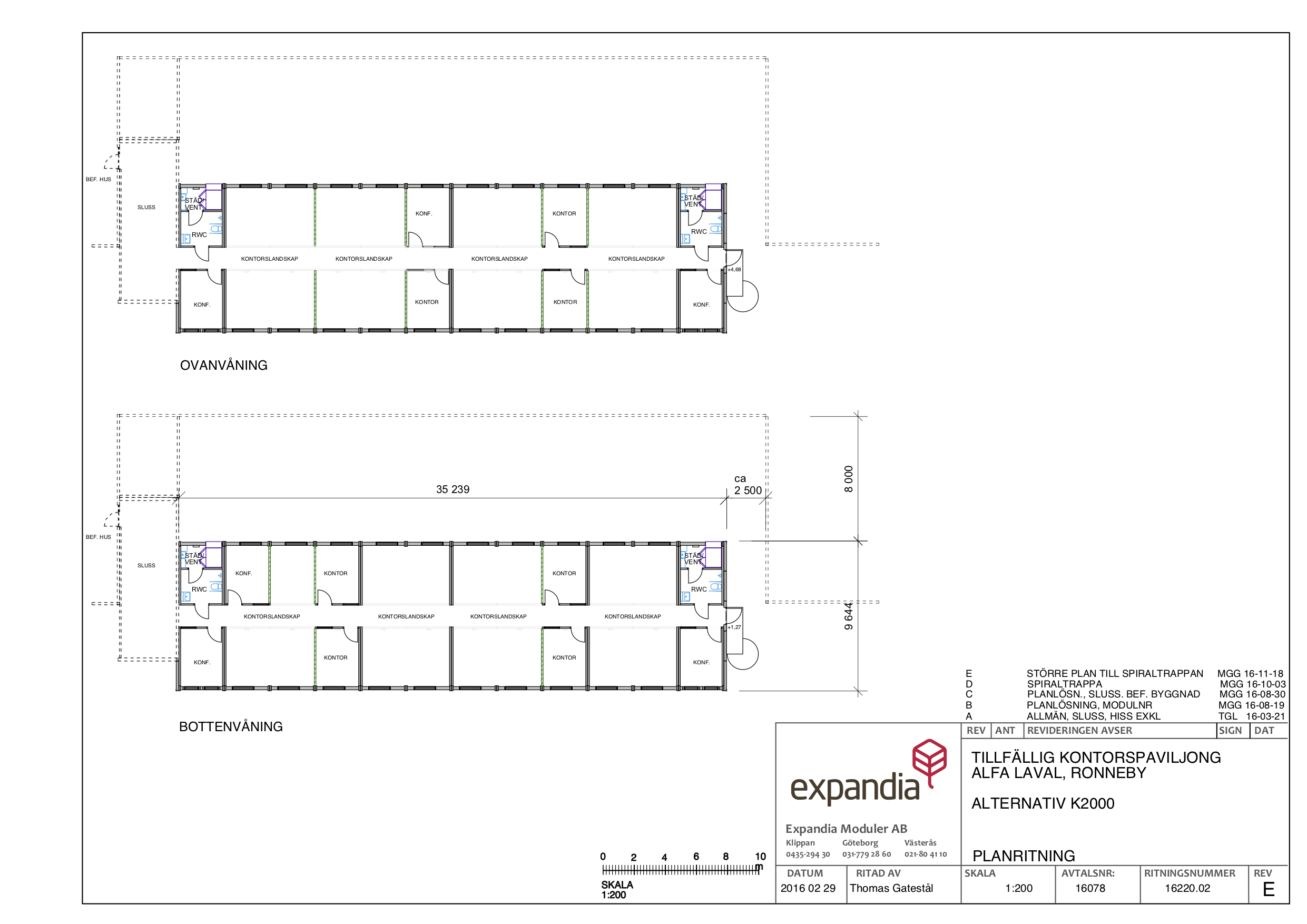 Hos Alfa Laval i Ronneby bilder 24 K2000-moduler en tvåvåningsbyggnad. Här finns stort kök med gott om matplatser och öppna kontorslandskap samt några mindre kontors- och konferensrum.