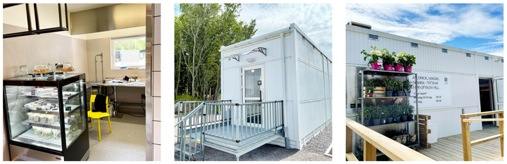 Intill den stora huvudbyggnaden bygger Expandia upp en modullösning på cirka 275 kvadratmeter längs den ena långsidan. Modulerna blir ett bageri och ett rymligt kök samt ytor för personalen och toaletter för besökarna.